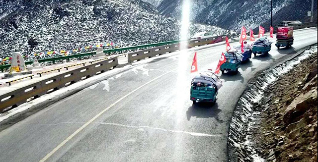 挑戰(zhàn)活動(dòng)從北山十二盤(pán)坡坡底出發(fā),當(dāng)時(shí)氣溫近-8℃,卻絲毫沒(méi)有影響挑戰(zhàn)的熱情。在保障安全的前提下,6名騎手駕駛著最大載重2000斤的金彭電動(dòng)三輪車(chē)盤(pán)旋而上,最終總耗時(shí)約2小時(shí)成功抵達(dá)目的地。這條有著“青藏高原最美盤(pán)山公路”之稱(chēng)的路線(xiàn),見(jiàn)證了金彭不斷推動(dòng)行業(yè)技術(shù)進(jìn)步和服務(wù)用戶(hù)的堅(jiān)定決心,再次夯實(shí)了金彭“山地車(chē) 大功率”的產(chǎn)品屬性。