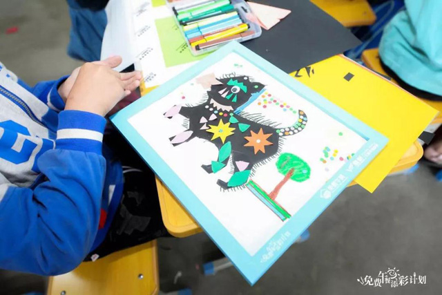 陳家崗小學的六一“歡樂課堂”從一節(jié)創(chuàng)意手工課開始。知名漫畫家丁一晨與兩位志愿者一起,給孩子帶來各式各樣的手工材料,在老師的指導下,孩子們天馬行空的想象力和動手能力被激發(fā),眼花繚亂的材料立刻變成了一幅幅精致的作品呈現(xiàn)在大家面前。“孩子們的創(chuàng)造力很強,在這個過程中,他們展現(xiàn)出的互助、分享和純真等美好品質也讓我受益良多。”課間,丁一晨將學生們上課的情景繪制成了漫畫,用畫筆記錄充滿童趣的一課。活動結束后,丁一晨將孩子們的作品發(fā)布在微博上,單條轉發(fā)超2000,評論超600,引起網(wǎng)友熱烈討論。