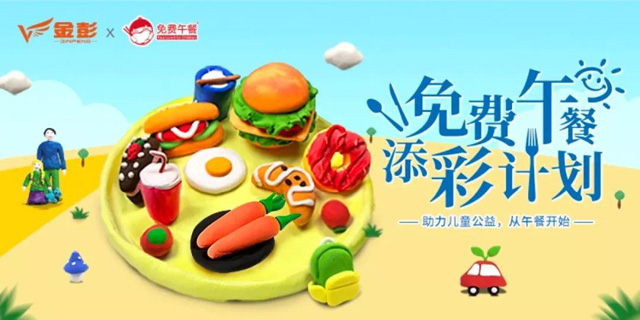 2018年8月,金彭正式倡議,在實現“饑餓脫貧”之后,還要讓山區兒童享受“精神脫貧”、“眼界脫貧”和“知識脫貧”。針對偏遠深山地區的落后教育資源,金彭牽頭與免費午餐基金策劃“添彩計劃”項目,向全社會征集了6名傳統文化手工藝人志愿者,從金彭總部徐州驅車出發前往四川大涼山、云南文山、安徽廬江三所山區學校,為山區兒童送去精彩的手工彩泥課程,輾轉6000多公里,12個晝夜。